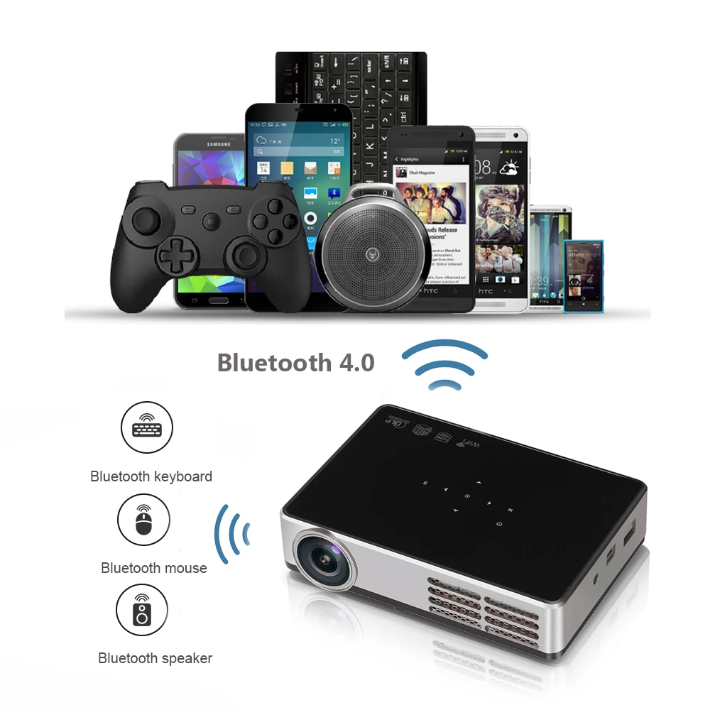 VIVICINE Newest 1280x800 Portable 3D Android 1080p ProjectorDLP HDMI USB PC WIFI Wireless Home Thea