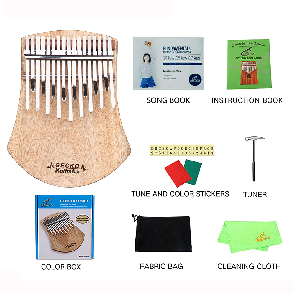 C tone GECKO K17NOTE Kalimba 17 Keys SOLID Camphorwood Kalimbawith Instruction and Tune Hammer Port